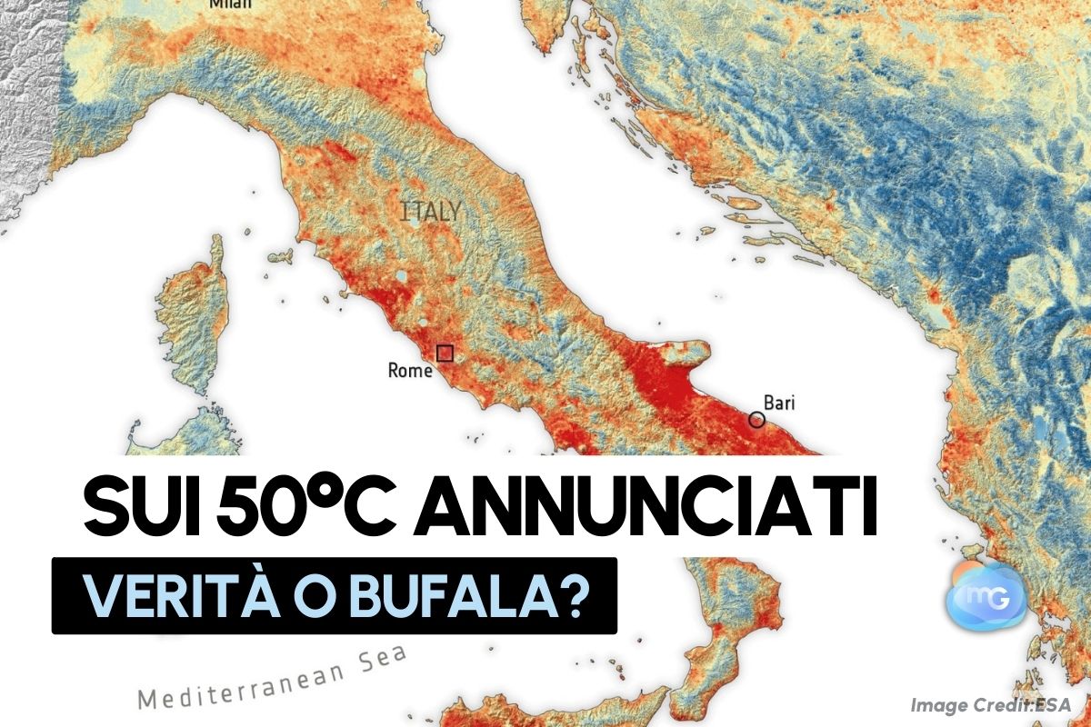 La notizia bomba: arrivano 50 gradi su mezza Europa! tranquilli, non è così! E allora come è nata la favola dei 50 gradi? Un rapporto dell’Agenzia spaziale europea (ESA) ha scatenato dal 13 luglio titoloni di tutti il mass media circa il record imminente da 50 gradi su gran parte di Francia, Spagna, Italia, Grecia. Nota bene: 50 in Italia, Francia e Grecia non sono stati mai raggiunti in alcuna località, e all'improvviso dovrebbero arrivare a tappeto su tutte queste nazioni! La notizia di un evento così straordinario sta facendo il giro del mondo. Insomma, tutti i mass media ancor oggi danno per scontato l’arrivo dell’ondata di caldo più rovente di sempre.