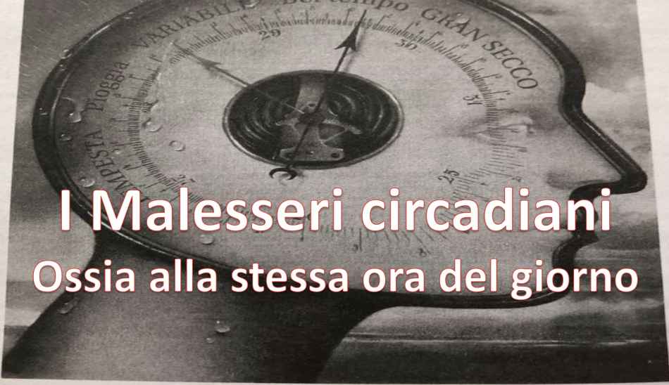 Sono molti i malesseri che tendono a seguire i ritmi circadiani (dal latino circa diem = circa un giorno) ovvero una cadenza prossima alle  24 ore, perché tutte le nostre funzioni vitali sono modulati dall’alternanza luce-buio o dalla periodica variazione giornaliera della pressione atmosferica. Spesso, conoscendo bene quando colpiscono, è possibile salvare vite umane e star più tranquilli. Ad esempio, di notte chi ha subito importanti operazioni chirurgiche va più facilmente incontro a complicazioni, come pure aumenta la secrezione acida dello stomaco (attenzione all’ulcera, alle gastriti soprattutto tra le 22.00 e le 2.00). Ma compaiono più facilmente attacchi d’asma, intorno alle 4.00, orario in cui il corpo riduce al minimo la produzione di sostanze bronco-dilatatrici naturali.