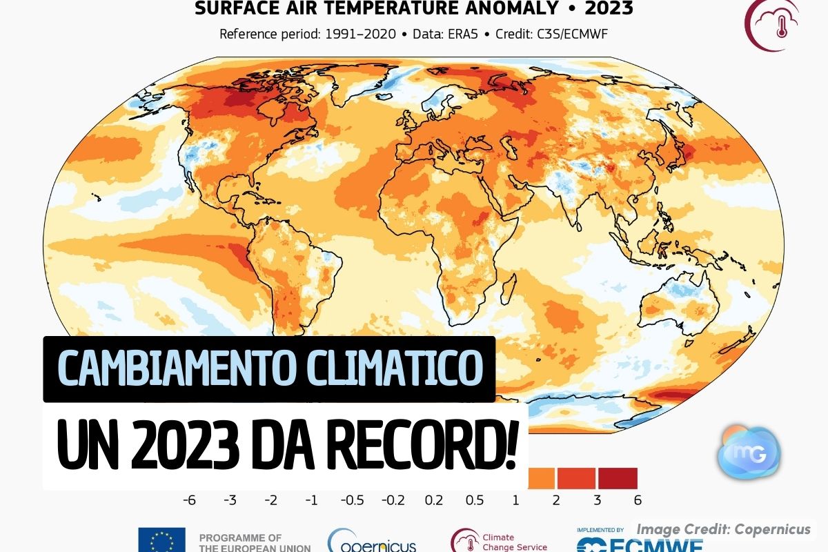 Il 2023 è l’anno più caldo dell’Era Moderna, la conferma è arrivata appena pochi giorni fa dal progetto Copernicus dell’Unione Europea. Battuto quindi il precedente record del 2016, e superata di gran lunga la media del trentennio 1991-2020. Insomma le temperature medie planetarie stanno rapidamente correndo verso valori sempre più elevati, e con il record del 2023 gli ultimi 10 anni sono anche i 10 anni più caldi da quando nel 1880 è cominciata la raccolta sistematica di dati meteorologici attraverso tutto il Pianeta. E i record stabiliti dal 2023 sono davvero numerosi e impressionanti.