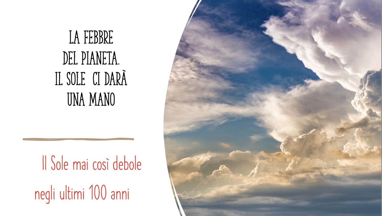 In primis la variazione dell'attività solare in termini di quantità di radiazione emessa e/o di numero di macchie solari. Entrambi tali grandezze hanno 2 cicli periodici: uno di 11-12 anni e un altro di circa 90 anni. Anzi il calore inviato dal sole sulla terra dal 1990 ad oggi è in calo ed ha toccato il valore più basso degli ultimi 100 anni proprio nel 2021: ai limiti dell’atmosfera 1363 watt/m2 a fronte dei 1367 w/m2 degli anni ’80. Un calo di appena di 4 watt/m2 e che ha determinato dal 1980 ad oggi un raffreddamento di appena 0,1°C apparentemente poco, ma in realtà un calo significativo rispetto al riscaldamento di 1°C dal 1850 oggi. E quindi è credibile che almeno nei prossimi dieci anni la radiazione solare non amplificherà li GW da effetto serra. Abbiamo scriti che i solo "in primis" come causa di variazione del clima (dopo l'aumento dei gas serra). Ma alla prssima puntata vi parleremo di un altro grande protagonsta del clima, il Nino.