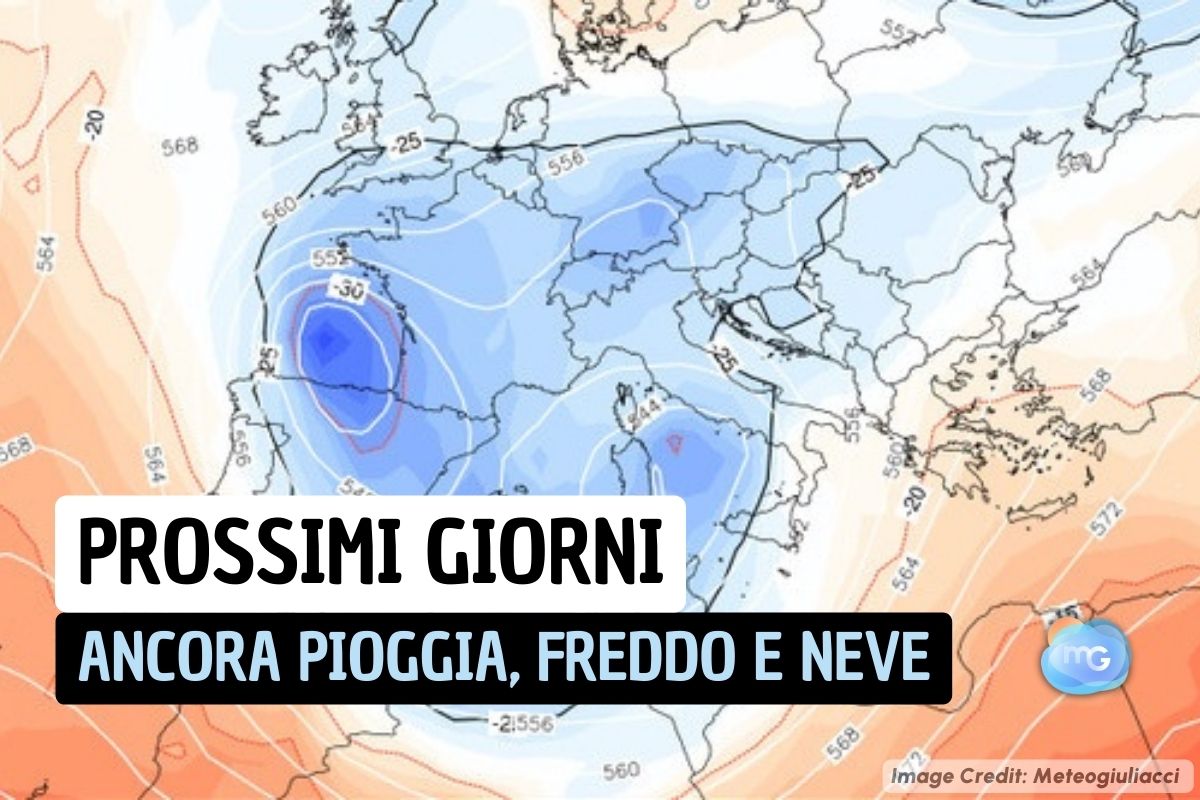 La previsione meteo aggiornata per i prossimi giorni promette ancora freddo, pioggia e neve su molte delle nostre regioni. Insomma, la settimana sarà in gran parte caratterizzata da maltempo invernale, soprattutto a causa di un centro di bassa pressione che vagherà sui nostri mari di ponente, da dove spingerà pioggia e neve in alcune fasi soprattutto al Centro-Sud, in altri momenti più che altro al Nord. Quindi dove pioverà nei prossimi giorni?