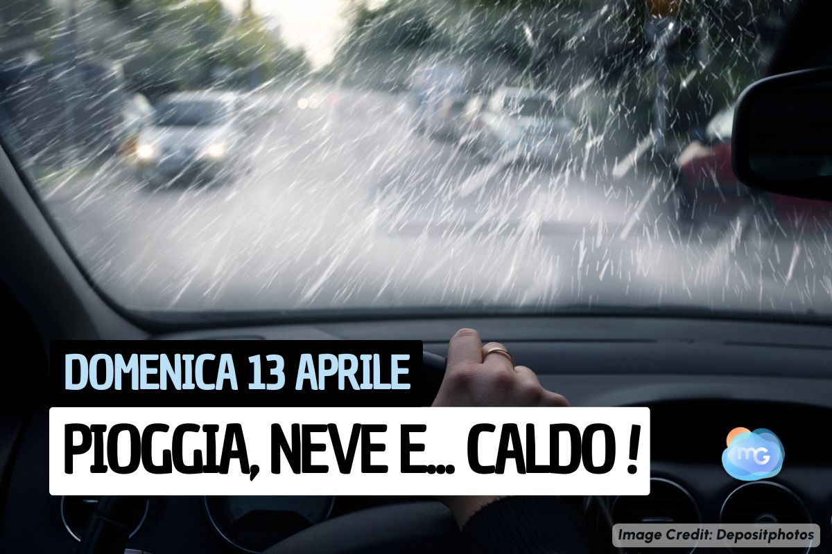 I modelli previsionali confermano che sarà una domenica 13 aprile nuvolosa o molto nuvolosa praticamente in tutta Italia, con la pioggia che nel corso del giorno renderà utile l'ombrello in tutte le regioni settentrionali e, più giù, anche in Toscana, Umbria e Marche. Come già scritto, ci sarà spazio anche per la neve, che però cadrà solo sulle Alpi al di sopra dei 1800-2000 metri. Del resto le temperature, a dispetto del peggioramento, rimarranno al di sopra della norma, specie in Puglia, Calabria, Sicilia e Sardegna, con possibili picchi a sfiorare addirittura i 30 gradi! Insomma, una domenica primaverile, in alcune regioni quasi estiva, ma comunque bagnata da numerose piogge.