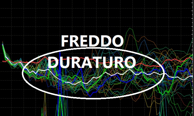 Allo stato attuale dell'arte, questa fase meteo fredda potrebbe durare parecchio: non ci sono infatti i presupposti per il ritorno di mitezza a tempo breve. Nell'immagine allegata notiamo che c'è una linea rossa (che è la media) e un'altra bianca in grassetto che va spesso sotto. Essa è la previsione ENSEMBLE: senza entrare troppo nei dettagli, se c'è una lunga fase meteo sotto media allora la linea bianca sta molto (e a lungo) sotto la rossa. E così sarà.