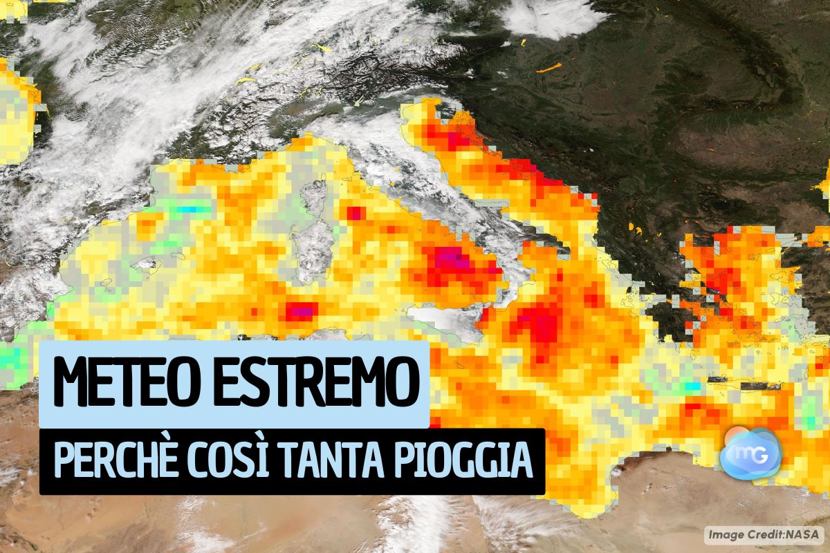 Del resto, come mostra anche l'immagine ricostruita grazie ai dati raccolti dai sensori a bordo dei satelliti della NASA, quasi tutta la superficie marina attorno alla nostra Penisola è caratterizzata da temperature al di sopra della norma (colorazioni delle tonalità giallo/arancione/rosso), in alcuni casi anche fino a 3 gradi oltre il normale. Questo significa che il Mediterraneo rappresenta al momento un enorme serbatoio di energia cui possono attingere le perturbazioni in transito per acquistare forza e portare quindi sul nostro Paese piogge più intense, insistenti e abbondanti. Purtroppo, considerata l'attuale situazione dei mari attorno alla Penisola, è probabile che anche le prossime perturbazioni riescano ad attingere a questo surplus di carburante, con il rischio quindi di nuovi episodi di forte maltempo.
