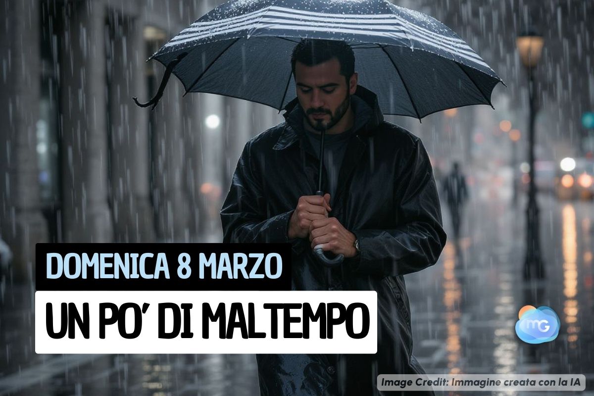 Nel corso di domenica 8 marzo, al Centro-Sud e Isole, il sole faticherà a ritagliarsi degli spazi tra le nuvole che, a tratti, porteranno anche la pioggia, soprattutto in alcune zone. In particolare dei momenti piovosi sono attesi, specie nel pomeriggio, in Sardegna, nord della Sicilia, Calabria, Basilicata, Puglia, Campania, Lazio, Umbria e Toscana, ma qualche piovasco è possibile anche nelle zone interne di Abruzzo e Molise e, più su, unica eccezione alla stabilità che ancora coinvolgerà il Nord Italia, anche nel Levante Ligure. Sarà l'inizio di una fase più perturbata che caratterizzerà i primi giorni della prossima settimana, quando sono attese altre piogge soprattutto al Centro-Sud.