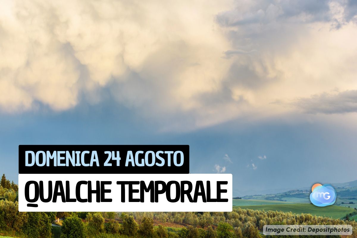 Le mappe meteo indicano che oggi, domenica 24 agosto, brevi acquazzoni e temporali saranno più probabili in Piemonte, Liguria, Lombardia e sulle zone interne del Centro-Sud, da dove però localmente scivoleranno anche sulle vicine coste adriatiche. Al momento pare basso il rischio di fenomeni meteo estremi, ovvero nubifragi e grandinati, ma va ricordato che oramai la stagione estiva ci porta con grande facilità questi eventi e quindi la possibilità non si può escludere del tutto.