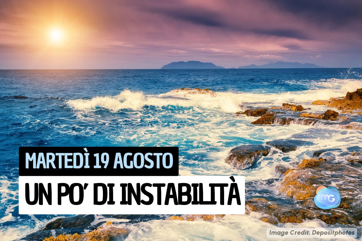 Una perturbazione atlantica si sta avvicinando all'Italia, ma i suoi effetti li avvertiremo solo nei prossimi giorni: nel frattempo oggi, martedì 19 agosto, sarà un'altra giornata nel complesso soleggiata anche se, come già avvenuto ieri, l'instabilità pomeridiana favorirà la formazione di qualche temporale, specie sulle zone interne della Penisola. In compenso, in alcune zone del Paese, si registrerà un ulteriore abbassamento delle temperature, oramai vicine alle medie stagionali in molte regioni: poi con l'arrivo della perturbazione, a metà settimana, sulla Penisola si riverseranno correnti relativamente fresche che, in molte zone del Centro-Nord, spingeranno addirittura le temperature al di sotto delle medie stagionali. Ma adesso vediamo di capire quali saranno le condizioni meteo durante la giornata odierna.