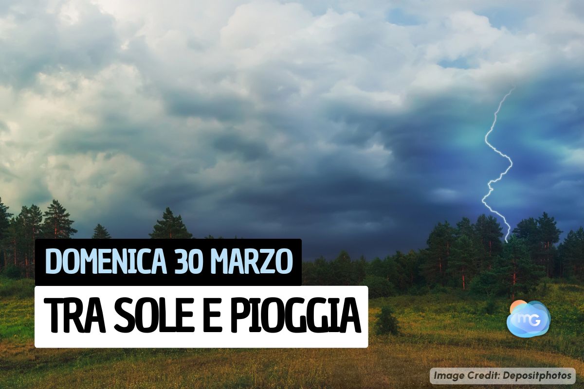 Questa domenica 30 marzo si potrà senz'altro fare a meno dell'ombrello al Nord, dove il tempo risulterà in prevalenza soleggiato e, comunque, asciutto. Nel Centro Italia il sole dovrà invece spartire il cielo con le nuvole, e non mancheranno dei piovaschi residui che bagneranno soprattutto Abruzzo, Molise e sud delle Marche; piogge comunque in generale a carattere isolato e di breve durata. Il maltempo sarà decisamente più presente al Sud e Isole, dove la giornata sarà ancora molto nuvolosa e per diversi tratti piovosa, con la possibilità anche di acquazzoni di forte intensità, specie in Puglia e Calabria.