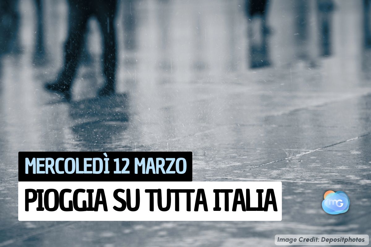 Le ultima mappe confermano che mercoledì 12 marzo il cielo risulterà nuvoloso o molto nuvoloso in tutta Italia, con piogge che nel corso del giorno bagneranno quasi tutte le nostre regioni, risparmiando solo il Salento e i versanti ionici di Calabria e Basilicata, dove però poi potrebbe piovere nella notte fra mercoledì e giovedì. Insomma, maltempo diffuso, con piogge a tratti anche di forte intensità, soprattutto sulle regioni del versante tirrenico. Come già scritto, arriverà anche nuova neve sulle Alpi: i fiocchi cadranno fitti, con accumuli di una certa importanza, su gran parte dell'Arco Alpino, ma solo al di sopra di 1200-1500 metri, a causa di temperature che, anche in montagna, saranno relativamente miti.