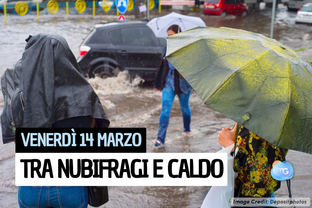 Ancora ombrello e impermeabile: le piogge non sembrano voler dare tregua neanche nella giornata di venerdì 14 marzo, specie in alcuni settori del Paese. Non si sarà infatti neanche il tempo di salutare una perturbazione che subito un'altra piomberà sulla nostra Penisola, portando ancora una volta maltempo soprattutto al Centro e al Nord. Al Sud invece il tempo risulterà meno perturbato e caratterizzato da ben temperature al di sopra delle medie stagionali: in particolare, si farà sentire un po' di caldo fuori stagione soprattutto in Puglia, Basilicata, Calabria e Sicilia, con temperature massime che potrebbero addirittura avvicinarsi ai 30 gradi! Insomma, al Sud sarà quasi estate, mentre al Centro. al Nord, tra maltempo e temperature vicine alle medie stagionali, la giornata avrà un sapore quasi invernale. Ma dove cadrà quindi la pioggia?