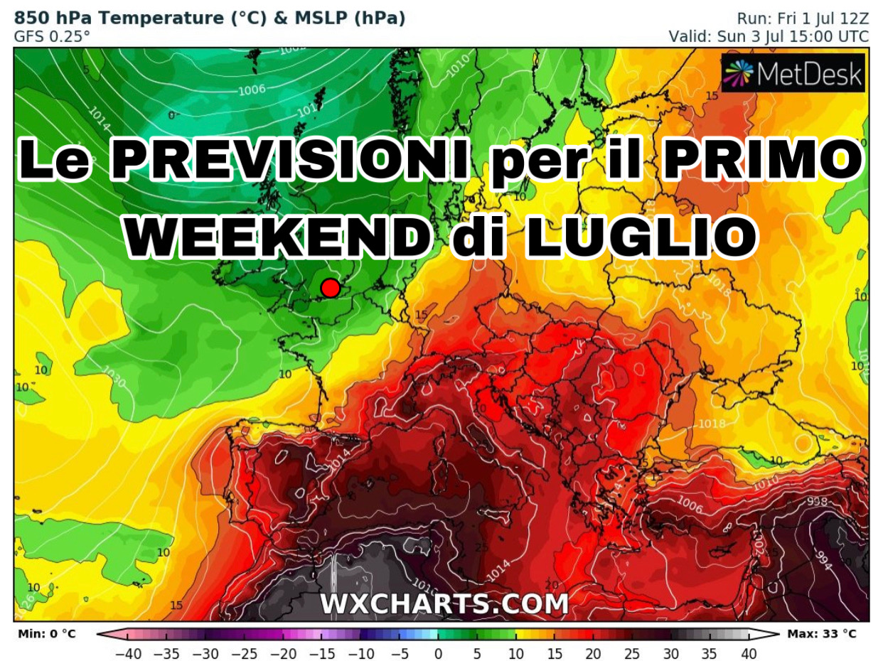 Poche le novità dal punto di vista termico: come in questi giorni, continuerà a fare caldo, decisamente caldo, con valori piuttosto superiori alle medie su tutta Italia. Il caldo africano ancora non intende mollare la presa e farà sudare la popolazione ancora per qualche giorno!