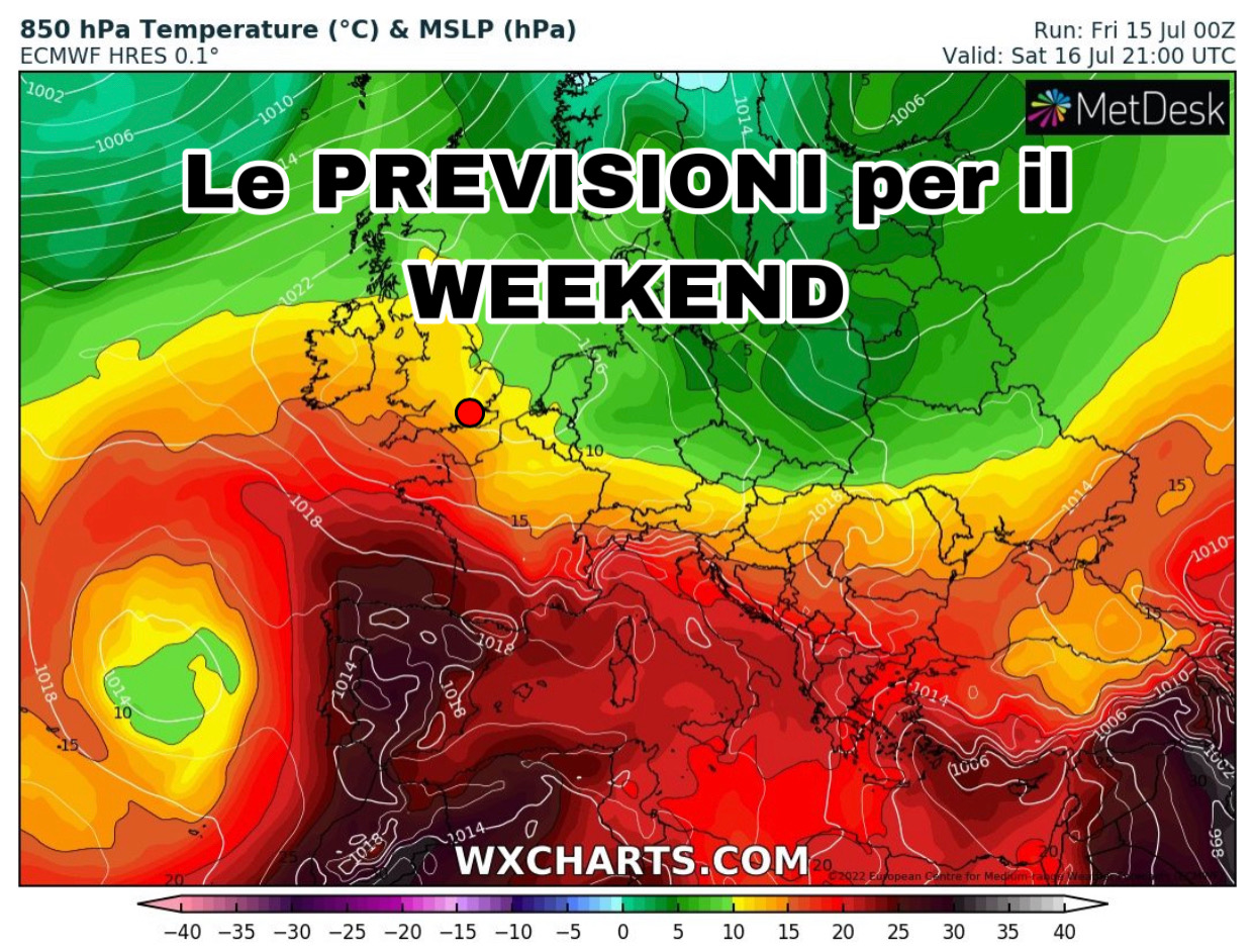 Termicamente parlando, non assisteremo a grossi sbalzi di temperatura nel weekend venturo: i valori resteranno molto elevati su tutta Italia, con un aumento rispetto ai giorni scorsi anche al Centro-Sud. Le temperature potranno diffusamente toccare i 33-38 gradi di giorno e difficilmente scendere sotto i 20-22 di notte su quasi tutta Italia, a bassa quota. Ecco le anomalie termiche previste per il weekend rispetto alle medie climatiche: