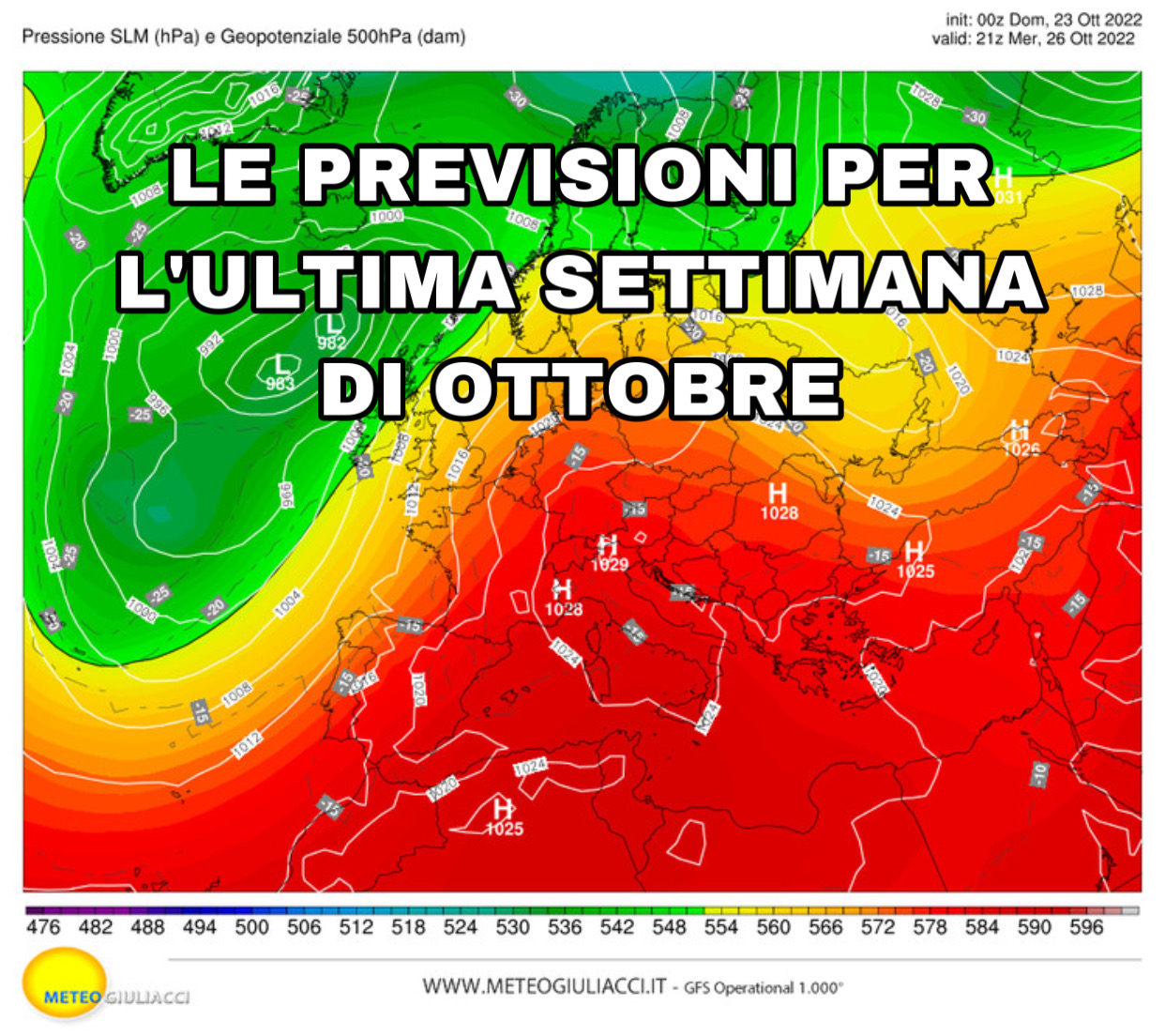 Termicamente parlando, nessuna novità eclatante, ma eclatante sarà il caldo: è infatti prevista continuare senza sosta la mega ottobrata iniziata ormai ad inizio mese, ma non solo: se verso il weekend le temperature all’estremo Sud potrebbero scendere di qualche grado al di sotto della norma, nel frattempo al Nord il caldo aumenterà ulteriormente facendo registrare di nuovo anomalie termiche positive superiori agli 8-10 gradi. Un qualcosa di versante assurdo e pazzesco. Un Ottobre incredibilmente mite che si ricorderà a lungo negli annali della meteorologia.