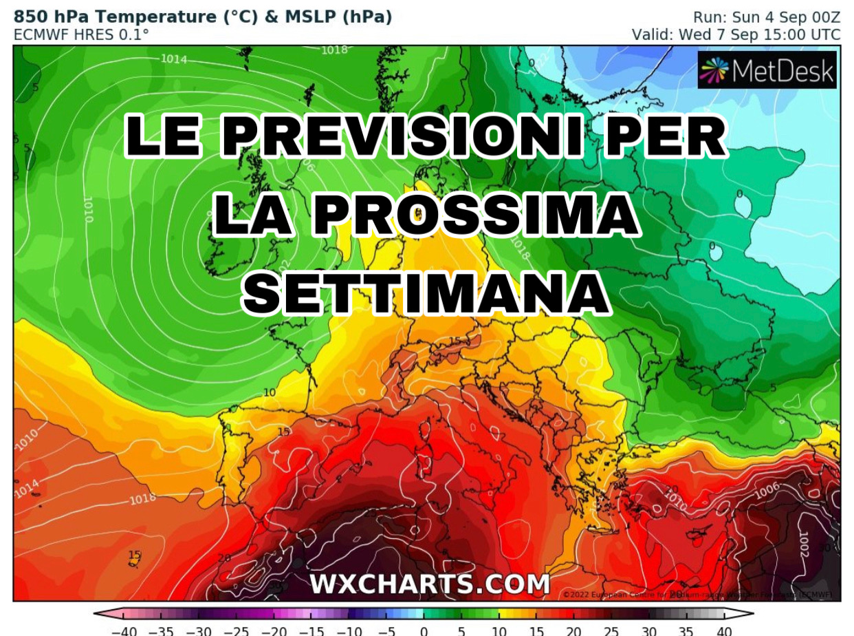Per buona parte della settimana le temperature resteranno un poco superiori alle medie stagionali, garantendo un vero e proprio periodo di “Estate Settembrina” a tutti quanti. Un calo termico potrebbe registrarsi nel weekend, durante la giornata di Domenica, specialmente al Nord e sulle centrali tirreniche, accompagnato da instabilità meteorologica.