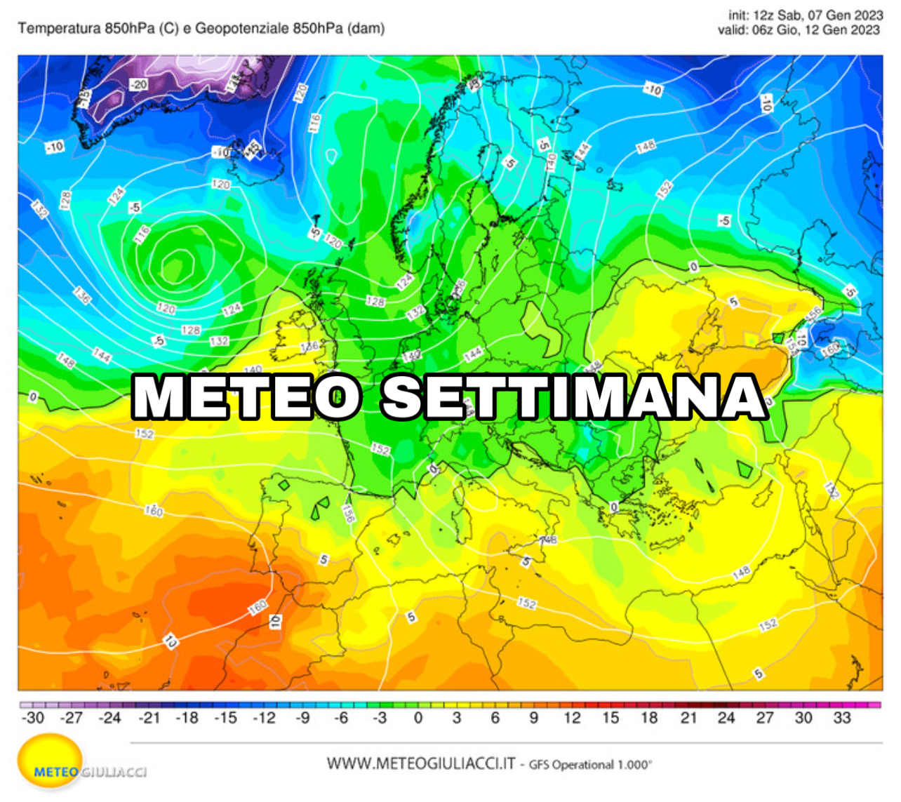 La settimana che sta arrivando presenterà alcune novità dal punto di vista termico: torneremo spesso e volentieri a ridosso delle medie stagionali, ma senza ondate di freddo. L’aria più fresca affluirà sul nostro paese dapprima tra Martedì e Mercoledì ovunque, poi di nuovo tra Giovedì e Venerdì al Centro-Sud. Nel resto della settimana prevarrà ancora il sopra-media termico; Inverno ancora assente nella maggior parte dei casi.