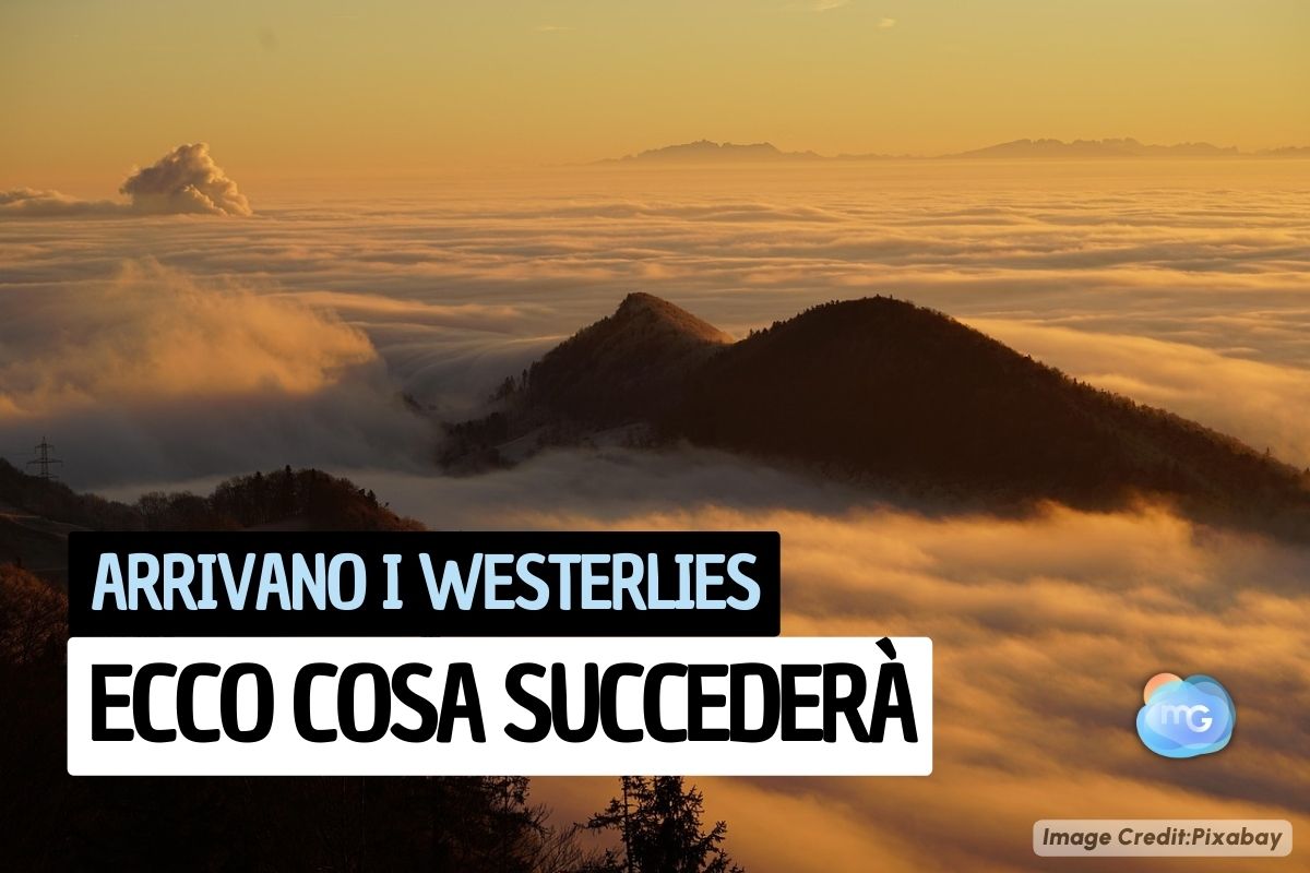 Per alcuni giorni arrivano i westerlies, le condizioni meteo che portano venti occidentali per il nostro paese. Ma di cosa si tratta? È un debole flusso oceanico che conduce molte nuvole sull'Italia, ma poche precipitazioni. Questo perché sostanzialmente i flussi risultano piuttosto deboli e non ci sono minimi di bassa pressione al suolo.