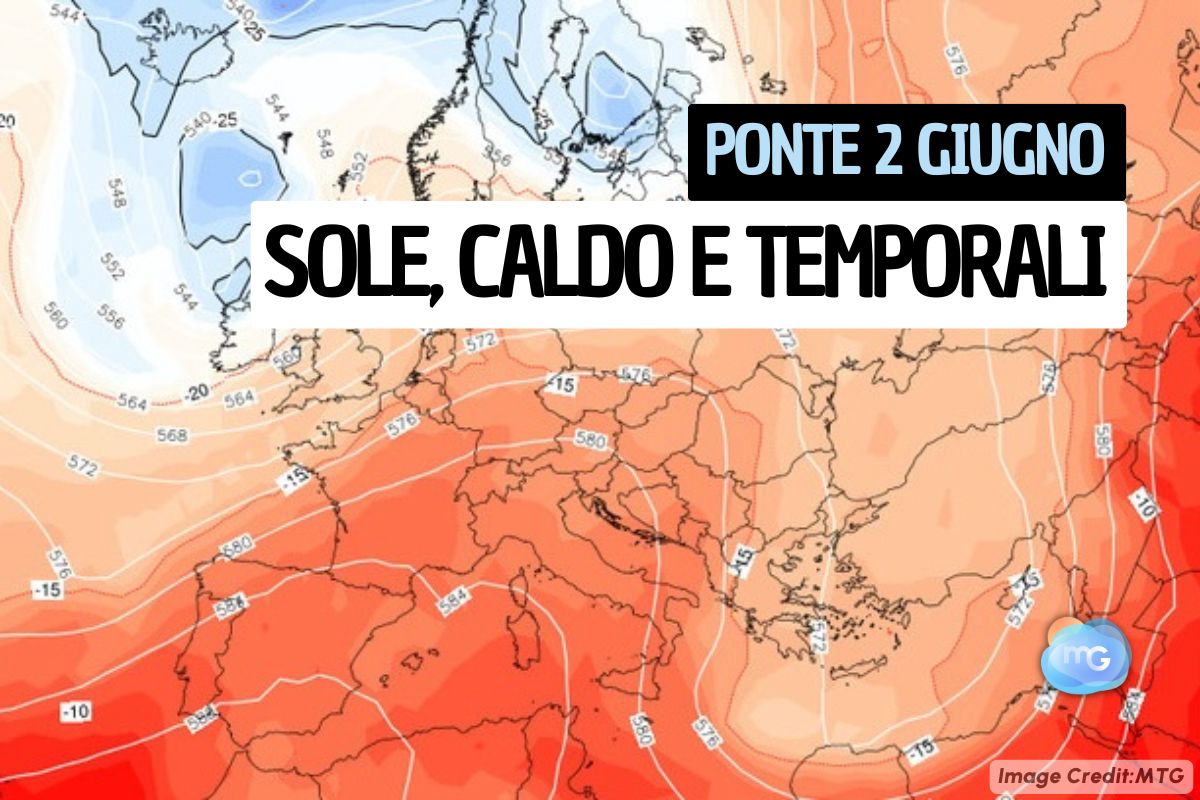Durante tutto il Ponte del 2 Giugno al Centro-Sud e Isole Maggiori il tempo sarà in generale soleggiato e stabile, con appena qualche annuvolamento pomeridiano sulle zone appenniniche, dove comunque non ci sarà bisogno dell'ombrello. Il sole riuscirà a ritagliarsi dello spazio anche al Nord, dove però si alternerà a momenti nuvolosi che, specie tra domenica 1 e lunedì 2 giugno, nelle ore centrali del giorno porteranno anche numerosi acquazzoni e temporali sulle Alpi, con la possibilità di locali sconfinamenti fin sulle vicine pianure di Piemonte, Lombardia e Veneto. Insomma, un po' di instabilità non mancherà, ma rimarrà confinata al Nord e coinvolgerà solo le ore centrali del giorno. Il caldo invece risulterà ben più diffuso e insistente.