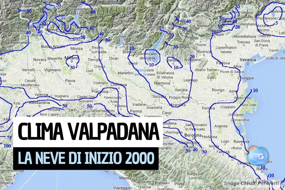 NEVE: la NEVOSITÀ MEDIA in VALPADANA nel PRIMO DECENNIO DEL 2000
