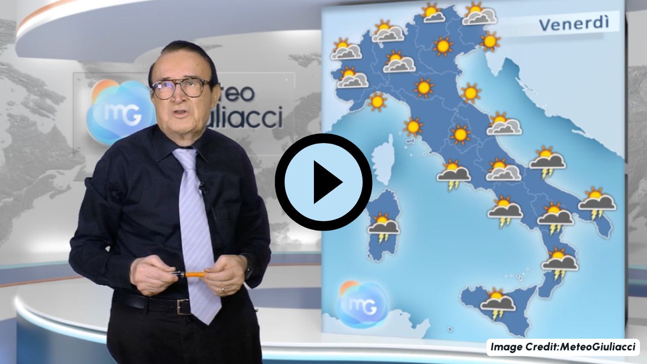 Il colonnello Mario Giuliacci descrive le previsioni meteo per la giornata di venerdì 16 maggio, quando rovesci e temporali, a tratti anche intensi, insisteranno soprattutto in alcune zone del Paese.