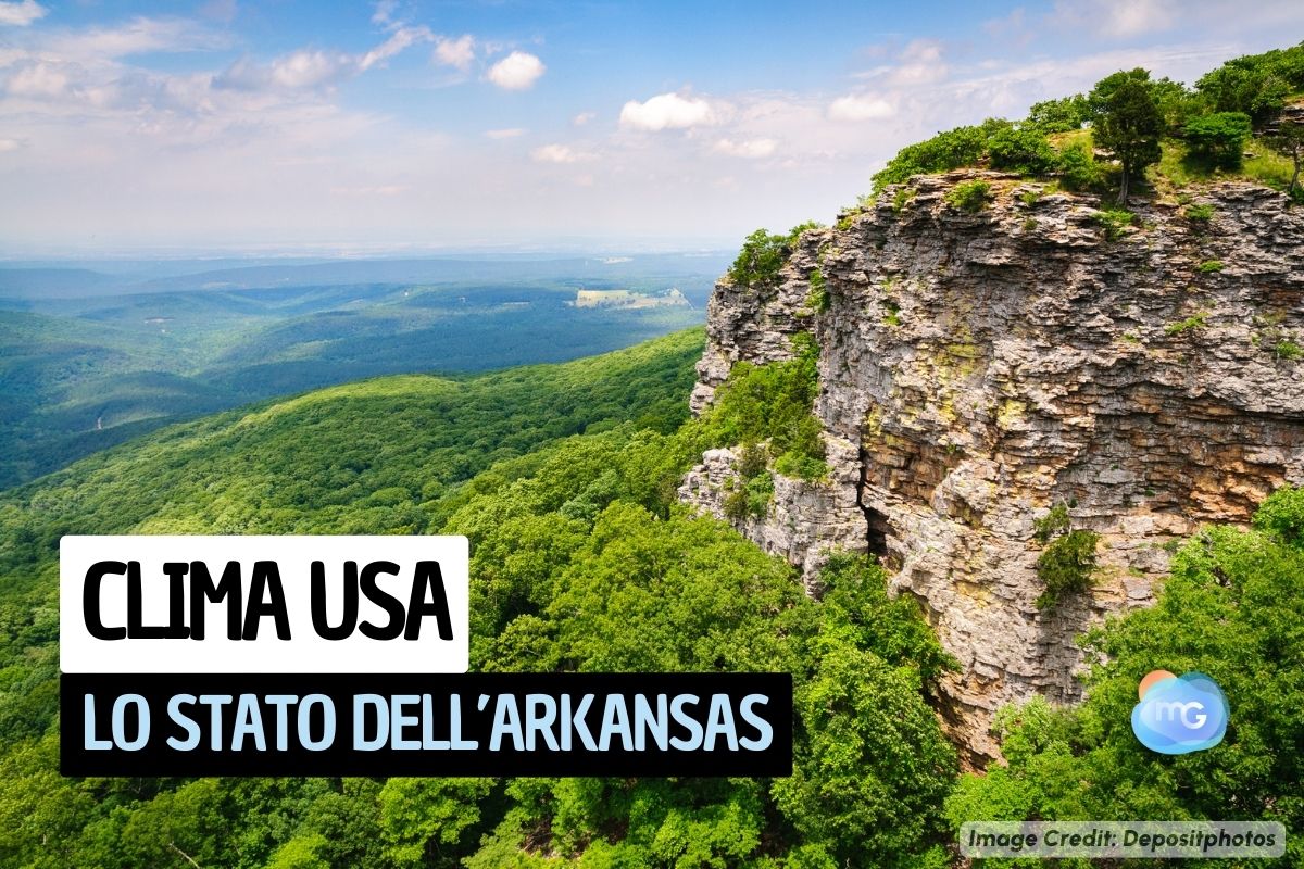 Procediamo con il nostro lungo viaggio del clima americano verso Est e verso Sud, precisamente con lo stato dell’Arkansas: nel Nord-Ovest dello stato dominano i rilievi, perlopiù di entità collinare, mentre a Sud-Est si apre un’immensa pianura; la capitale è la città di Little Rock, nel centro del paese.