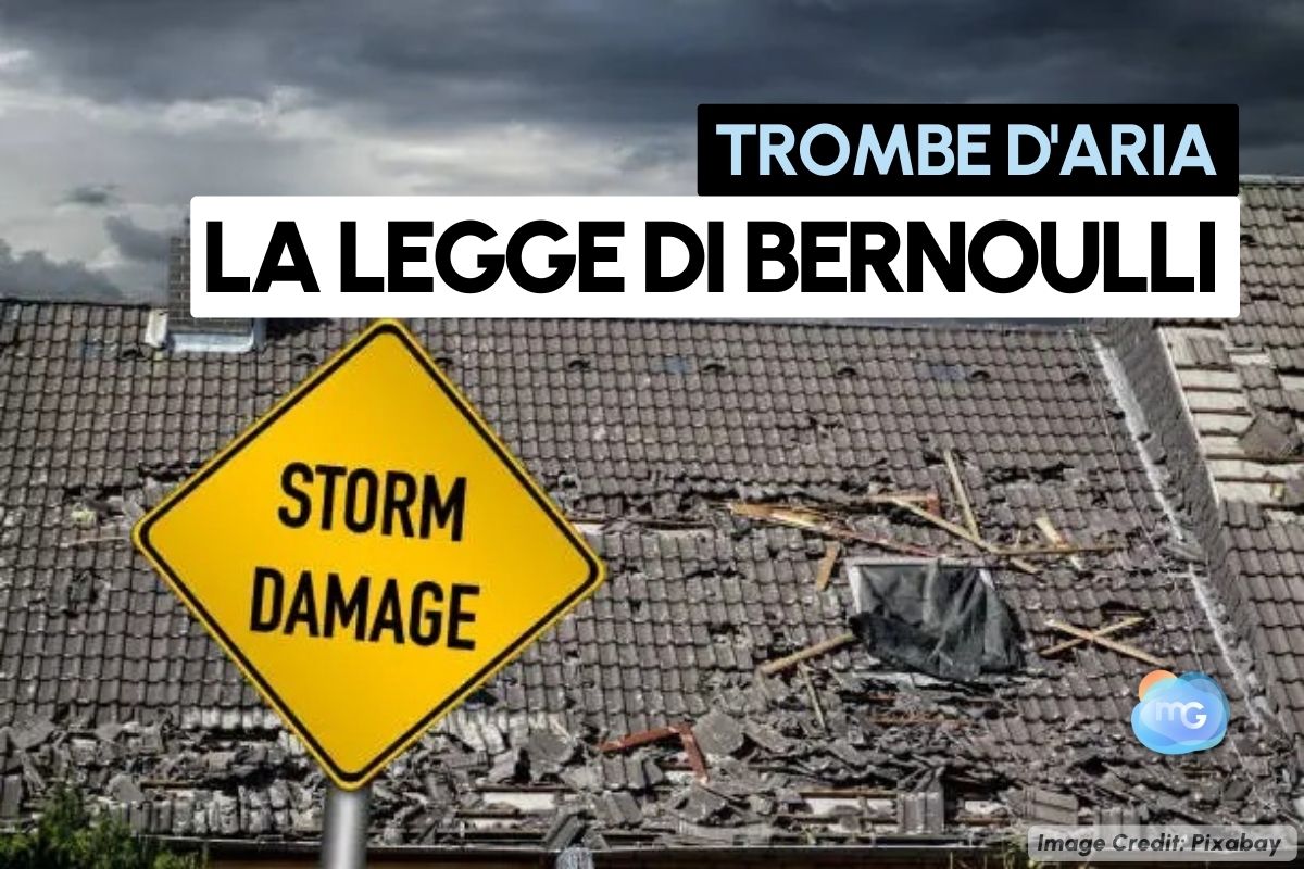 Applichiamo le conclusioni dell’esperimento al tetto di un edificio sottostante mansarda.I venti intensi della Tromba d’aria, scorrendo a contatto con il tetto vi determinano una bassa pressione. Nella sottostante mansarda la pressione atmosferica invece resta invariata e quindi molto più elevata perché lì l’aria è immobile. Insomma, tra mansarda e superficie esterna del detto si innesca una spinta verso l’alto, dalla alta verso la bassa pressione. Più i venti sono intensi e tanto più è bassa la pressione dell’aria a contatto con il tetto e quindi tanto più forte è la spinta verticale di sollevamento del tetto, il quale, dopo essere stato divelto viene trasportato via dai venti forti della tromba d’aria