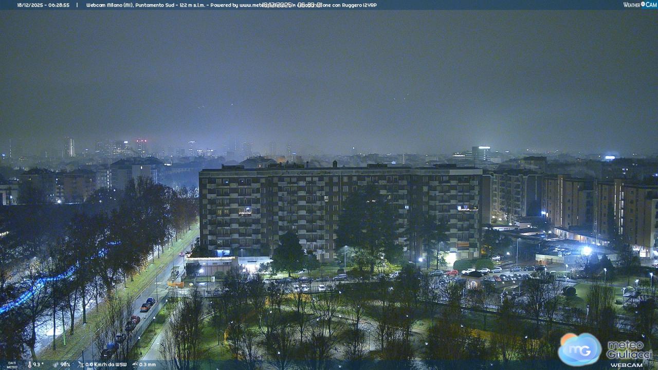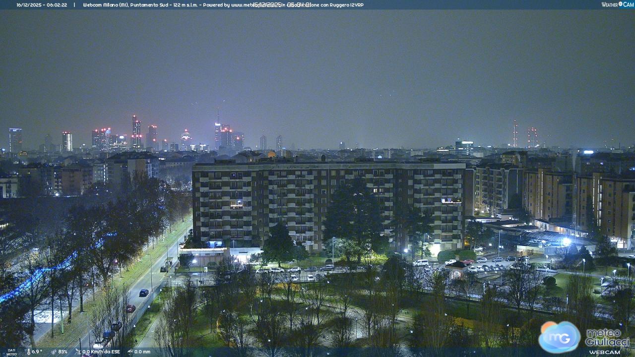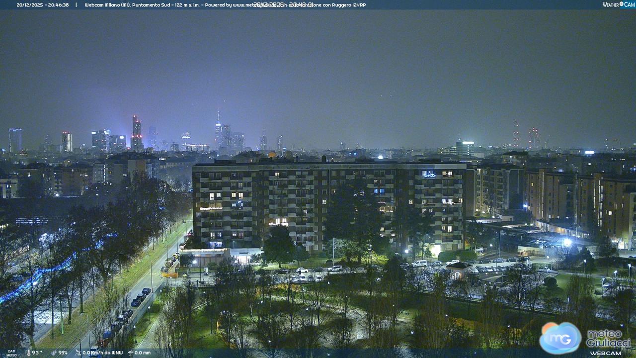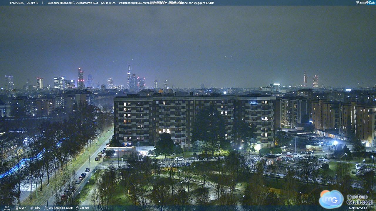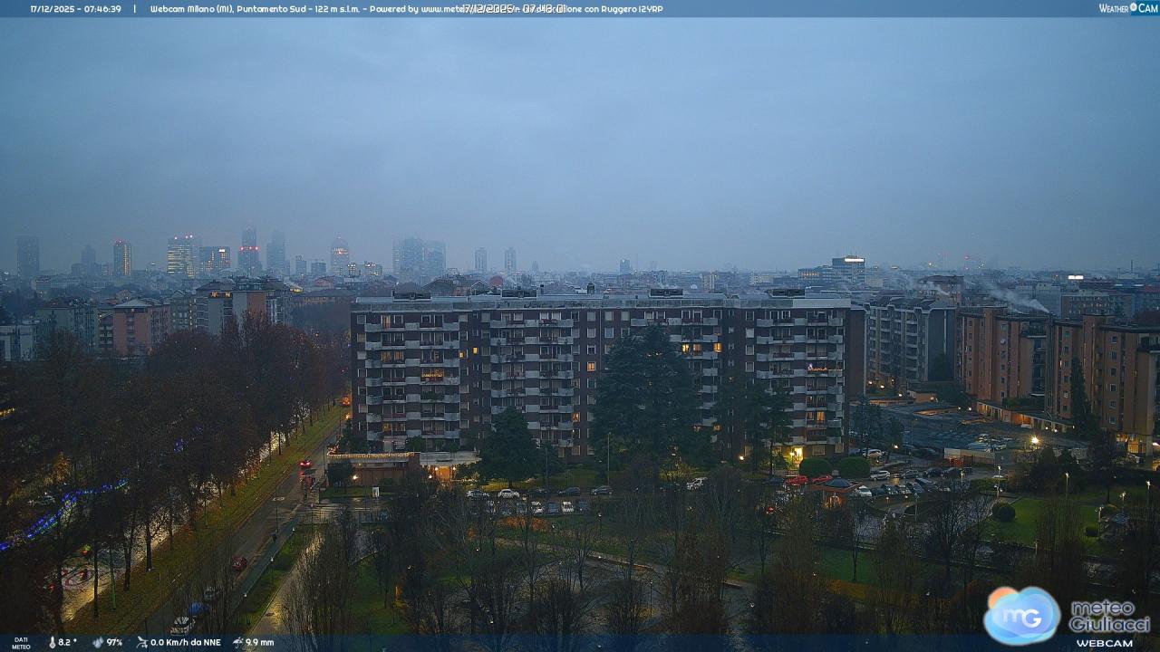 Webcam ad alta risoluzione Mobotix M26 di MeteoGiuliacci, installata nella zona Nord di Milano con ripresa verso Sud, in primo piano il centro direzionale della città, la Stazione Centrale è visibile sulla sinistra dell'immagine.