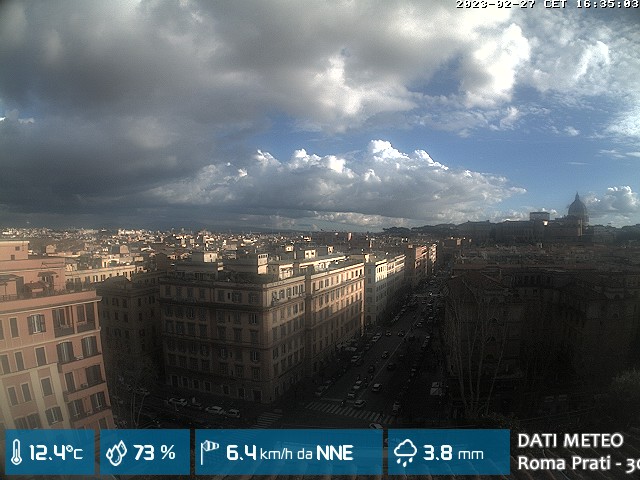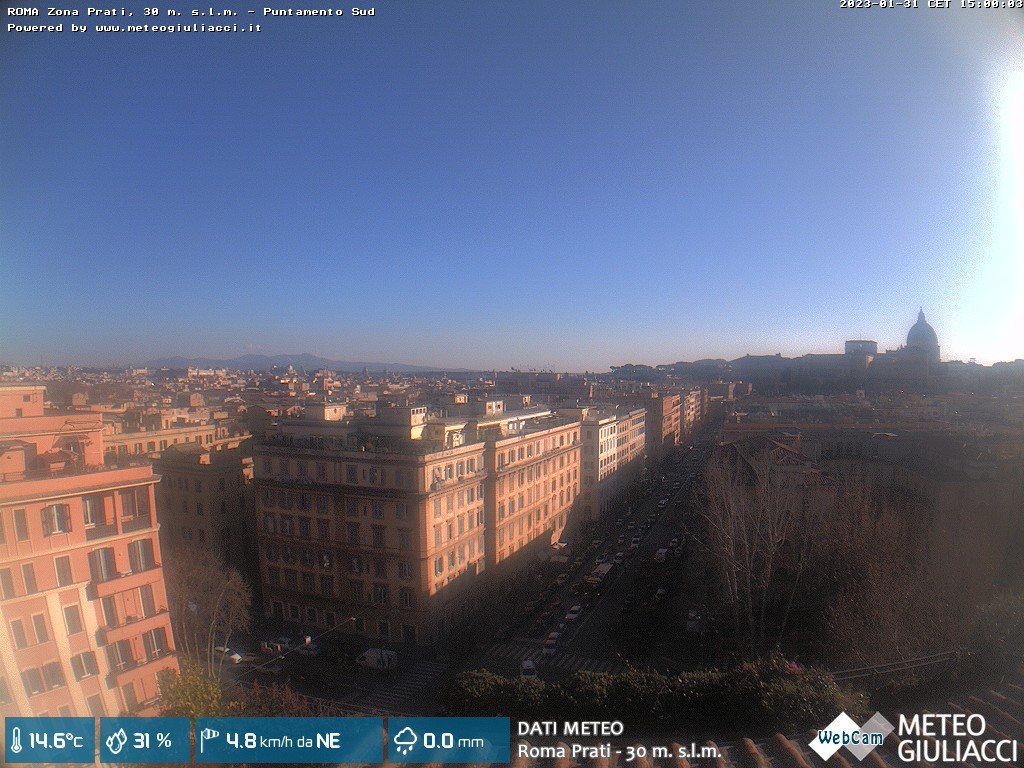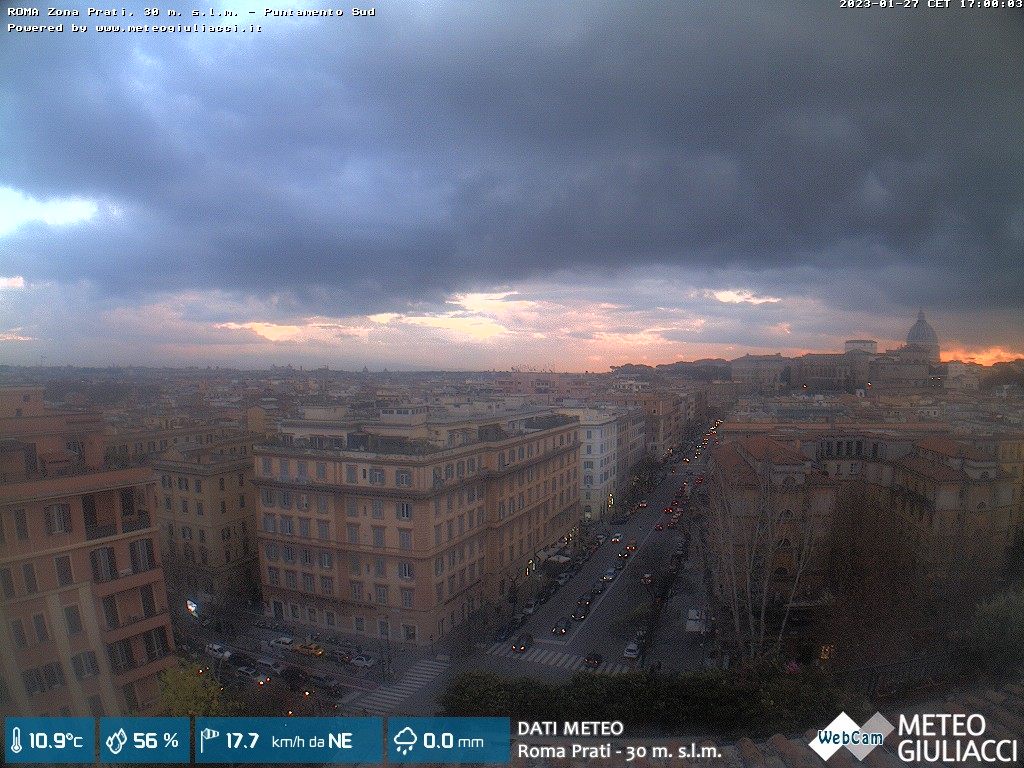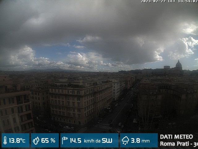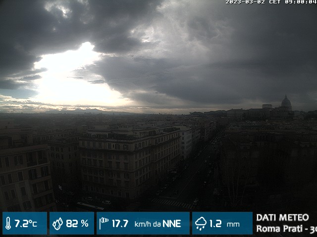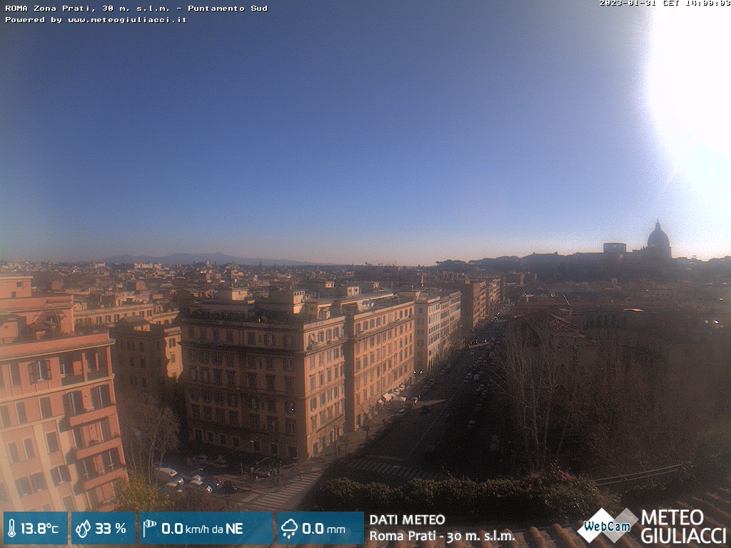 Webcam ad alta risoluzione di MeteoGiuliacci, installata presso lo Studio Legale Mannucci, in zona Roma Prati 30 m. s.l.m., a due passi dalla Città del Vaticano e dai principali monumenti della Capitale d'Italia.
