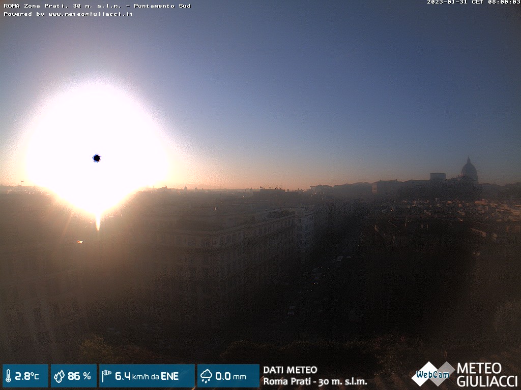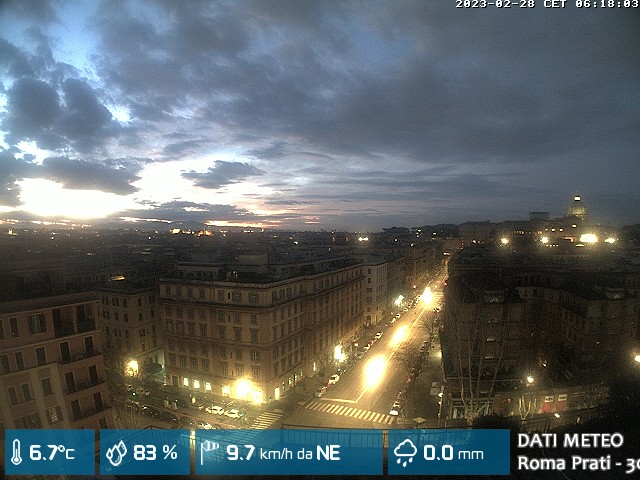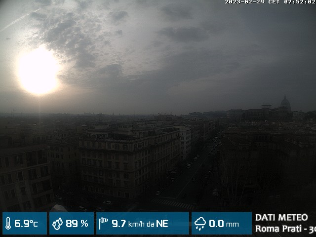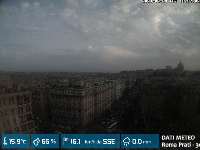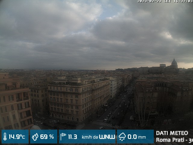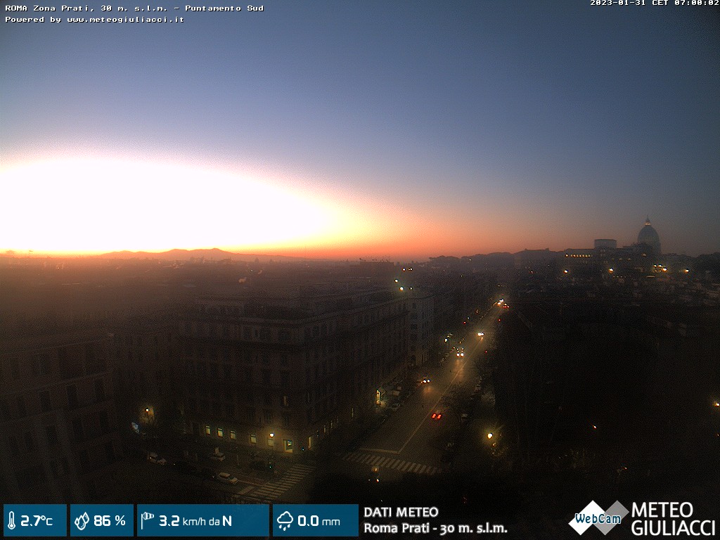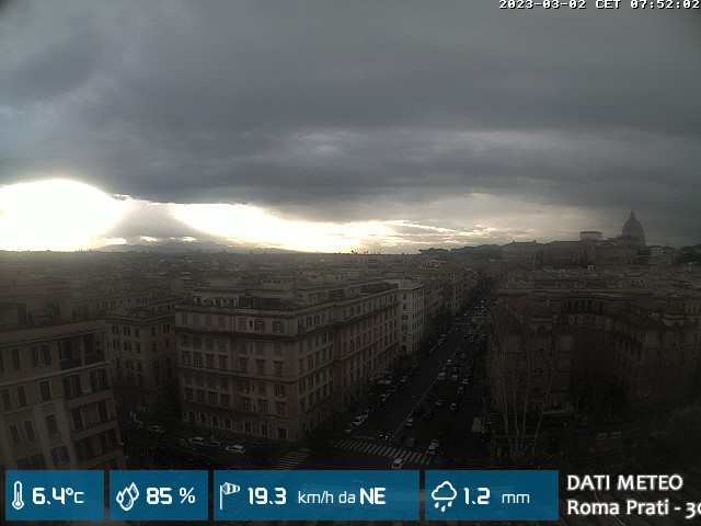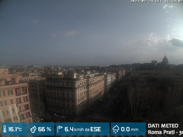 Webcam ad alta risoluzione di MeteoGiuliacci, installata presso lo Studio Legale Mannucci, in zona Roma Prati 30 m. s.l.m., a due passi dalla Città del Vaticano e dai principali monumenti della Capitale d'Italia.