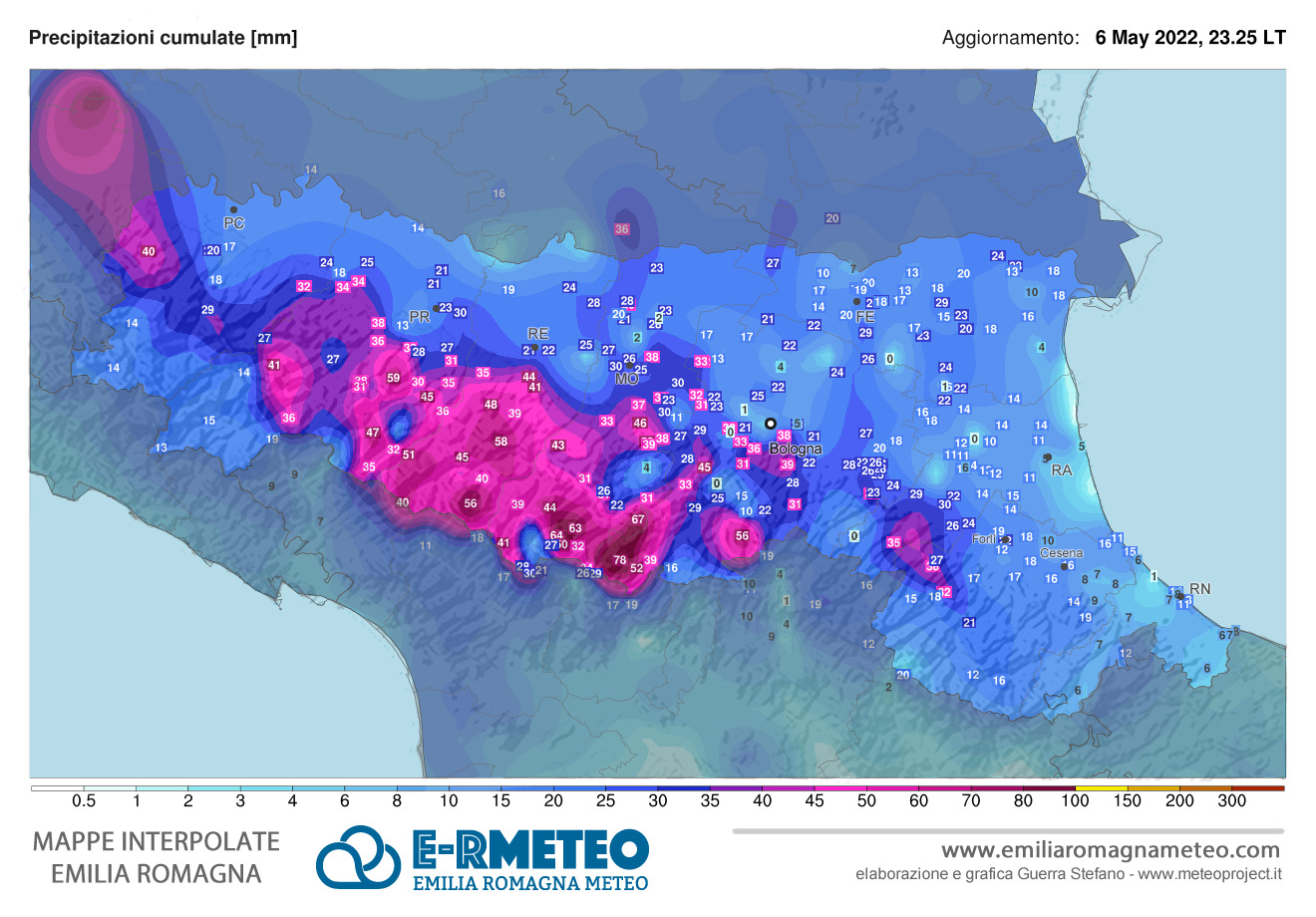 ANALISI: le PIOGGE di venerdì 6 maggio in EMILIA-ROMAGNA