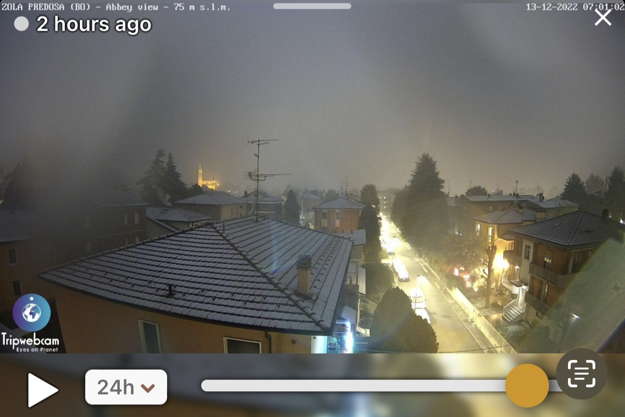 Partiamo col dire che Bologna e tutta la sua provincia avevano assistito a primi tentativi di nevicate a bassa quota già l’11 di Dicembre, giornata in cui fiocchi di neve misti alla pioggia si sono spinti fino a città come Imola, Calderino e altre; un velo di neve sopra i 600 metri circa. Per di più, la giornata di Lunedì 12 Dicembre è stata fredda su tutto il territorio, con temperature che hanno superato a fatica i 2/3 gradi di giorno e che si sono spinte a ridosso dello zero o anche sotto la mattina. Vediamo dunque cosa è successo ieri!