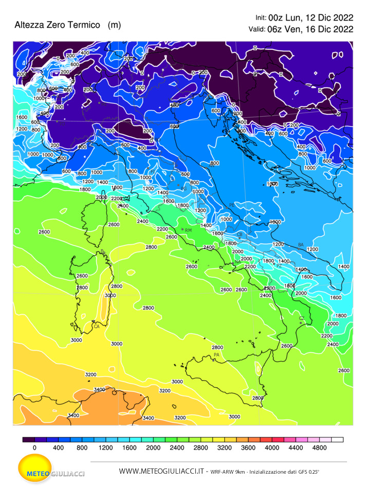 Ecco l’altezza prevista dello zero termico per la mattina di Venerdì 16 Dicembre: