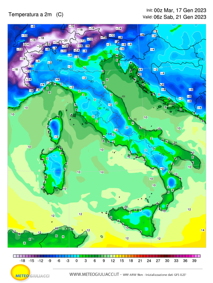 Ecco le temperature minime previste dal nostro modello meteorologico per Sabato mattina in tutta la nazione: