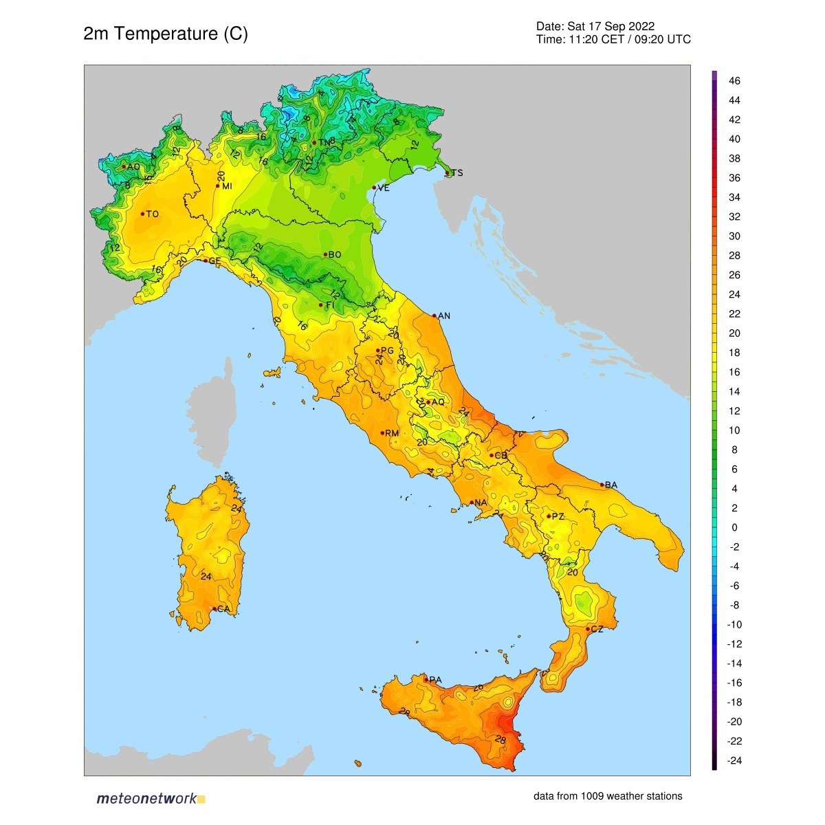 Per i più frettoloso di voi, ecco un breve riassunto degli effetti dell’ondata di freddo in Emilia-Romagna del 17 Settembre (ringraziamo Emilia Romagna Meteo):