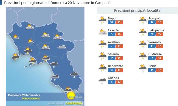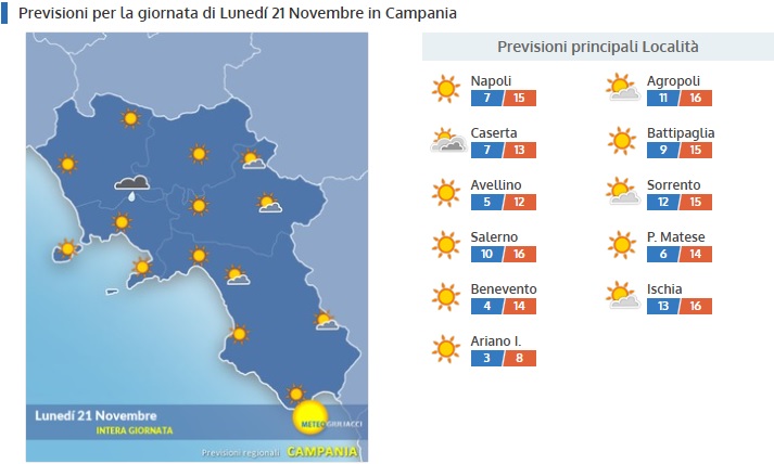 Meteo Campania: il tempo previsto da Domenica 20 a Martedì 22 novembre