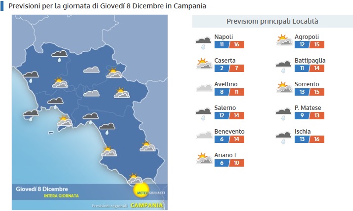 Meteo Campania: il tempo previsto per il Ponte dell'Immacolata
