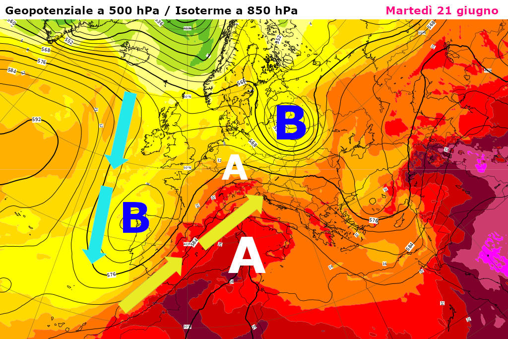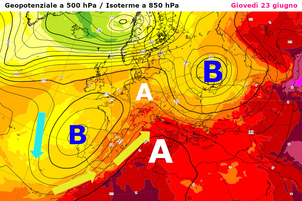 La nostra regione sarà esposta al continuo afflusso di correnti meridionali di estrazione africana che giorno dopo giorno porterà le temperature su valori anomali per questo periodo e per di più con tassi di umidità crescenti fino a determinare condizioni di caldo molto afoso tra giovedì 23 e sabato 25 giugno. L'espansione del promontorio sub-tropicale in direzione delle nostre regioni centro-meridionali sarà determinato dalla persistenza di una circolazione depressioanari ad ovest della penisola iberica; una configurazione barica che negli ultimi anni si ripete sempre con più frequenza determinando sulla nostra penisola ondate di caldo di natura africana.