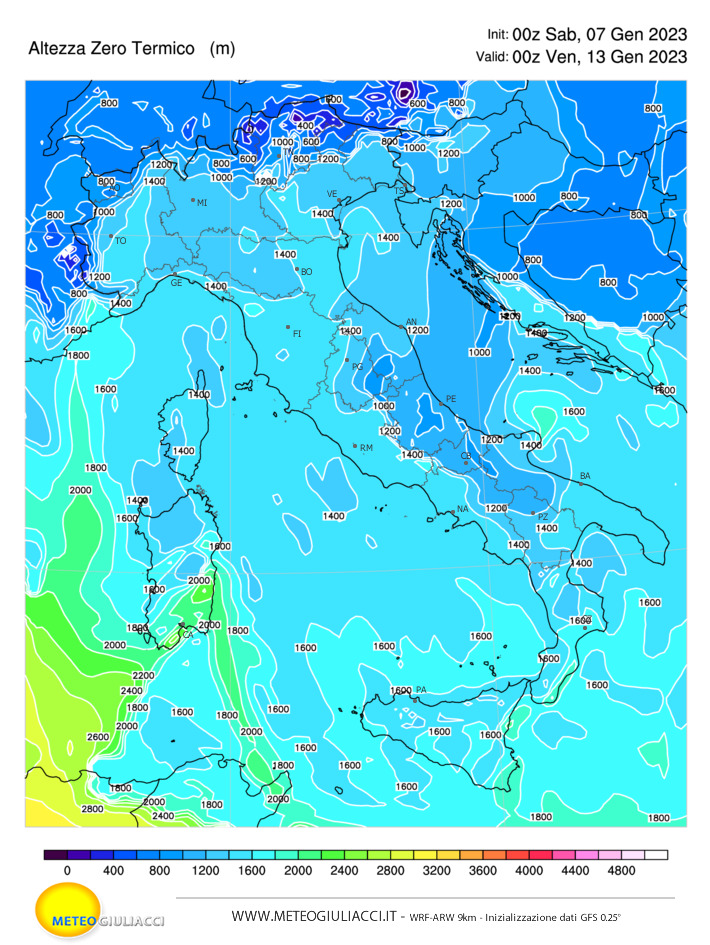 Ecco l’altezza dello zero termico prevista per la notte tra Giovedì e Venerdì: