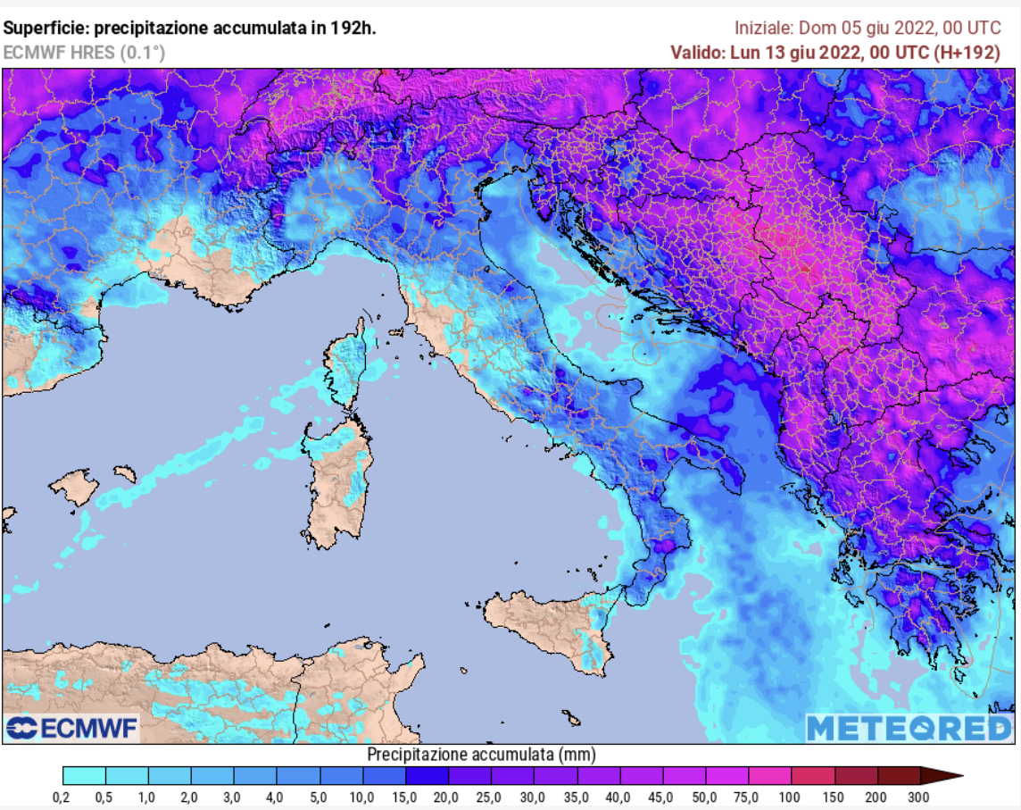 Vi forniamo, schematicamente, il riassunto di quanto potrebbe accadere secondo le previsioni odierne durante i giorni della prossima settimana per quanto riguarda le precipitazioni: