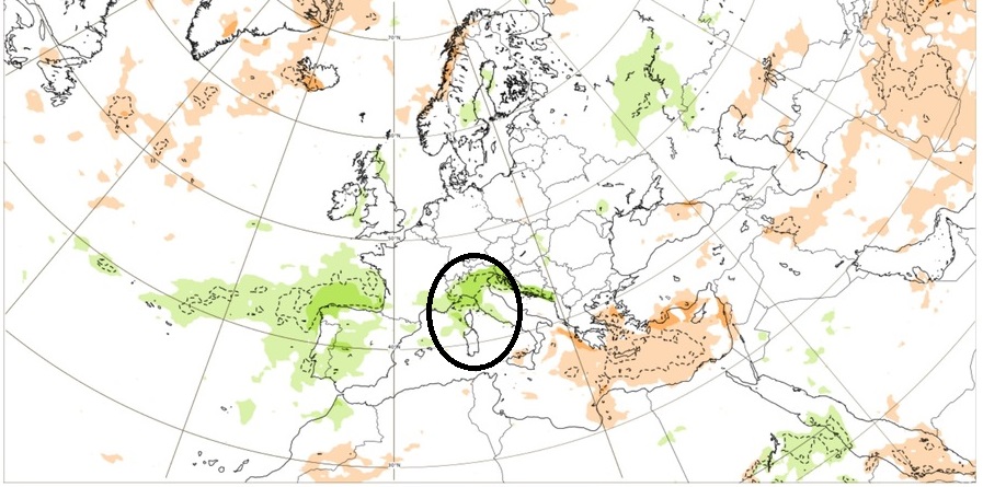 Le proiezioni meteo aggiornate del Centro Europeo sul lungo periodo (ECMWF) confermano una seconda parte di questo mese con precipitazioni superiori alla norma, in particolare sulle regioni del Centro Nord. Il tutto grazie a frequenti impulsi instabili. Come già scritto, sono solo tendenze, ma se ciò fosse confermato avremmo due conseguenze importanti. La prima è che non farà tanto freddo, con un'anomalia positiva delle temperature di circa +1/3°C rispetto alle medie climatiche di riferimento su buona parte dell'Italia (in particolare al Meridione). La seconda è che ci saranno flussi umidi imponenti, in grado di scaricare tante precipitazioni sulle regioni in esame. Non pare quindi un periodo caratterizzato da gelo e freddo, piuttosto una fase più mite, ma ricca di piogge, in particolar modo al Settentrione. Ne riparleremo.