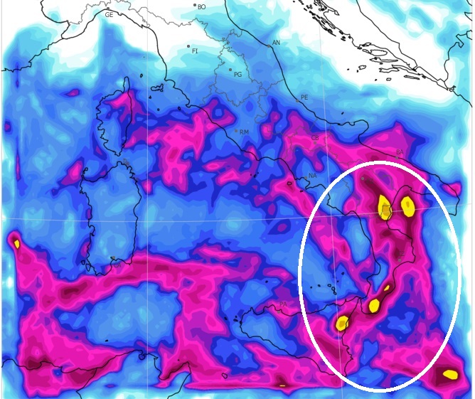 In tale giornata sono attese precipitazioni importanti, localmente a carattere di nubifragio sulla bassa Puglia e sulla Calabria ionica, ma pure precipitazioni su Campania e Basilicata. Ma l’attenzione maggiore è riservata per Domenica 27: occhio alla Calabria ionica, dove i terreni saranno già saturi e non potranno drenare l’ulteriore acqua in arrivo. Seguiranno importanti aggiornamenti meteo in materia.