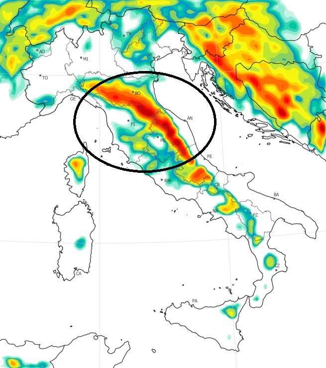 In tale giorno, residue nevicate potranno interessare la Romagna, mentre il clou del maltempo sarà su tutto il comparto adriatico e al Sud. In tal frangente, piogge, temporali e nevicate (a quote talora collinari) continueranno per diverso tempo.