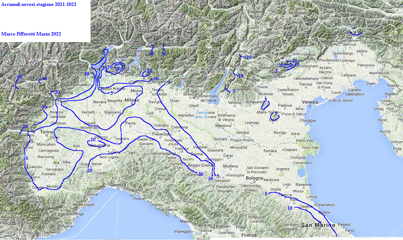 Grazie alla mappa appena sfornata, andiamo a scoprire quanta neve è caduta in Val Padana nell’Inverno meteorologico 2021/2022!