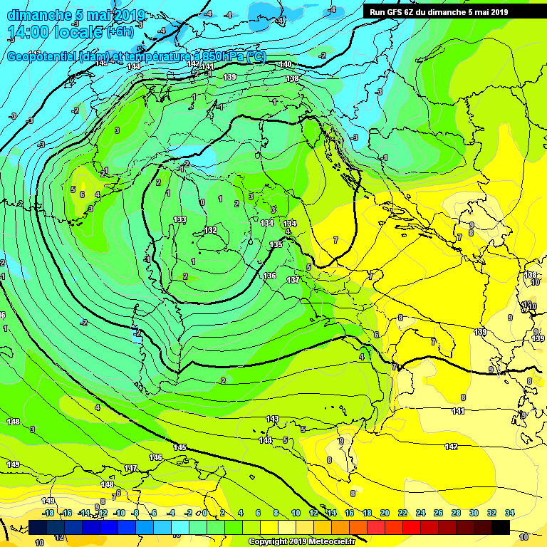 Dopo una nottata di piogge intense, l’Emilia-Romagna era in procinto di essere interessata da termiche inferiori allo zero a 850 hPa di quota nelle prime ore del pomeriggio di Domenica 5 Maggio, in particolare nella porzione centro-occidentale della regione.