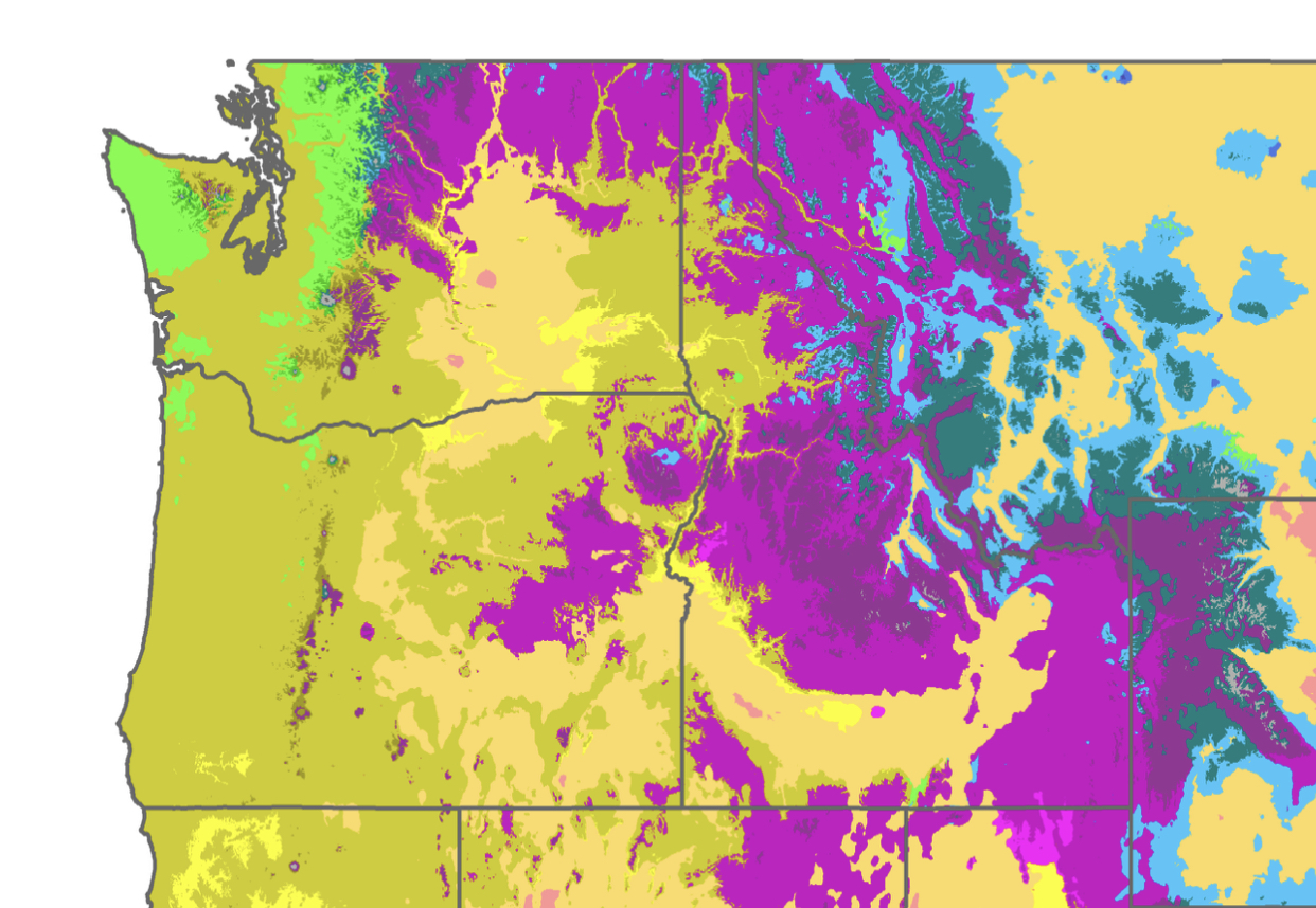 La classificazione di Trewartha propone i seguenti climi dominanti negli stati del Nord-Ovest: il clima “Do”, ovvero temperato oceanico, diffuso nelle aree in prossimità del Pacifico degli stati dell’Oregon e di Washington, oltre che nelle zone più continentali dove gli Inverni non sono troppo rigidi: qui le precipitazioni sono costanti tutto l’anno e le temperature medie sono superiori ai 10°C per 4-7 mesi; la temperatura media del mese più freddo è superiore a 0°C. Diffusissimo è anche il clima “Dc”, temperato continentale, che ha le stesse caratteristiche del Do tranne che per la temperatura media del mese più freddo, qui inferiore a 0°C: si trova in quasi tutto l’Idaho e nelle zone più lontane dall’Oceano di Washington e Oregon. Alle quote più elevate di questi stati fa poi la sua comparsa il clima “E”, ovvero boreale, che ha come definizione solo da 1 a 3 mesi con temperature medie superiori a 10°C. Per concludere, nelle zone dove le precipitazioni sono scarse per la maggior parte dell’anno è presente il clima “BS”, ossia quello della steppa.