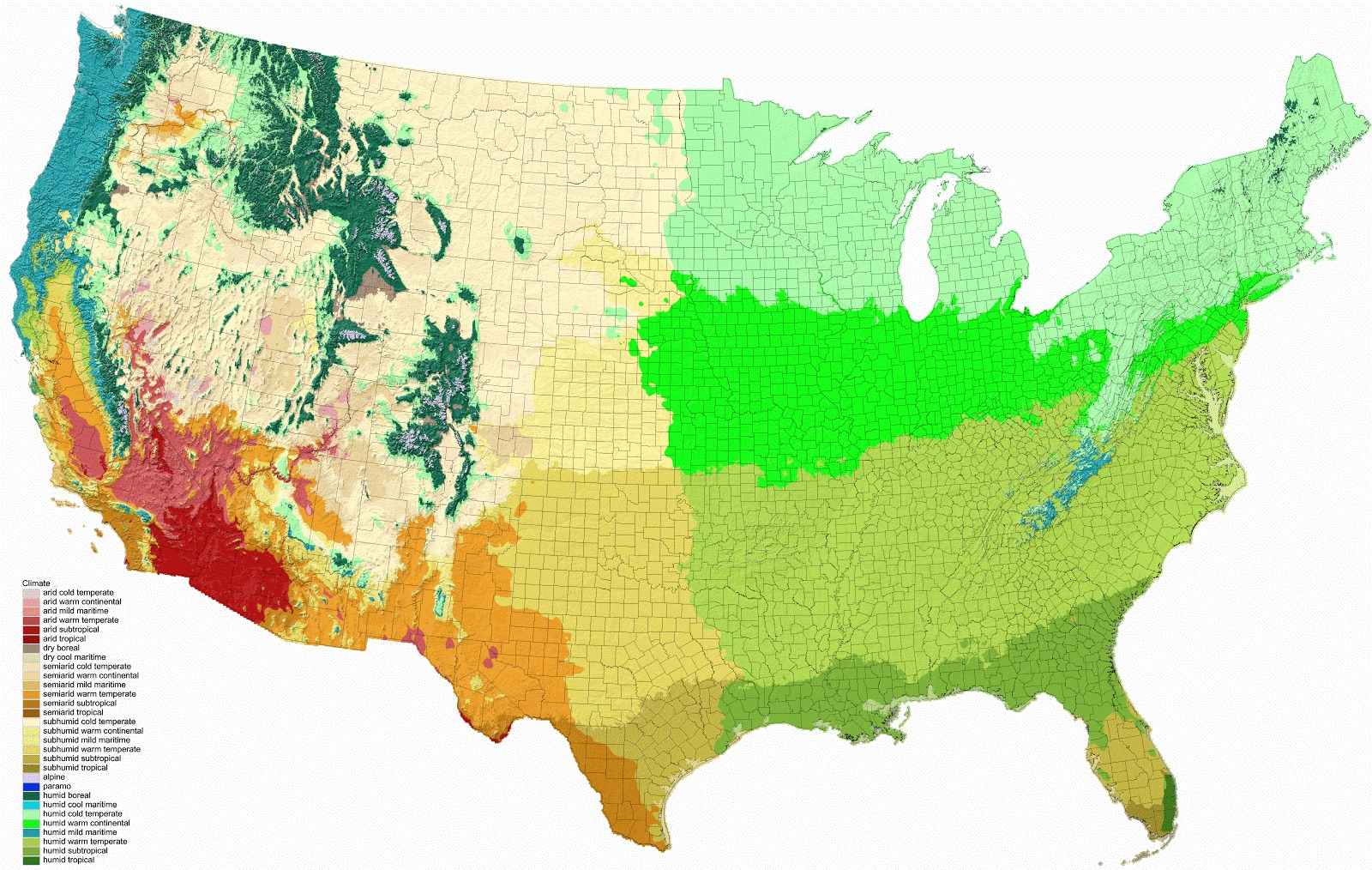 Terminiamo (per il momento) lo studio del clima degli Stati Uniti analizzando un’altra classificazione climatica, molto interessante e ad alta risoluzione